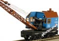 черного цвета, имеющей 2 двухосные тележки. Корпус крана голубого цвета,