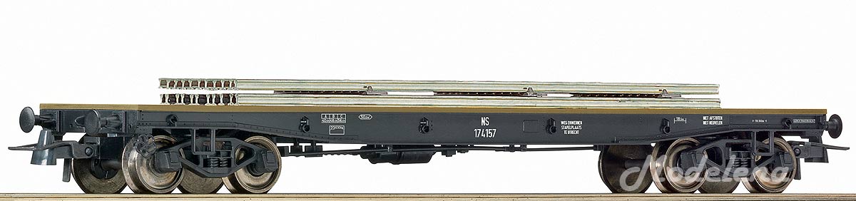 Железнодорожная модель. Платформа 4-осная с грузом рельсов, типоразмер "НО" (16,5мм).