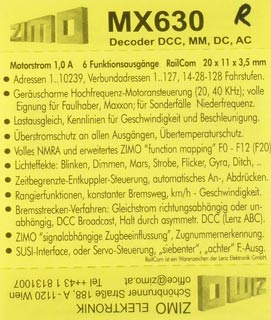 Декодер цифрового управления MX630R. «DCC». «НО».